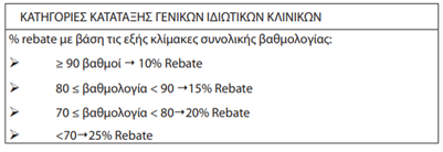 Η αποζημίωση καθορίζεται με βάση το % rebate που προκύπτει από την συνολική βαθμολογία των κριτηρίων (βλ. παρακάτω πίνακα).