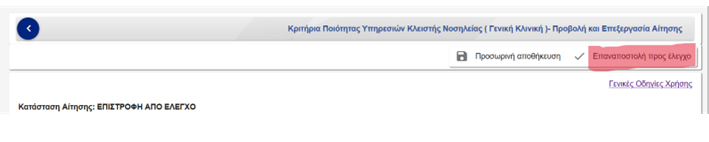 Πώς επιστρέφω στον έλεγχο των ποιοτικών κριτηρίων Γεν.Ιδιωτ. Κλινικών μία αίτηση προκειμένου να βαθμολογηθεί;